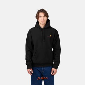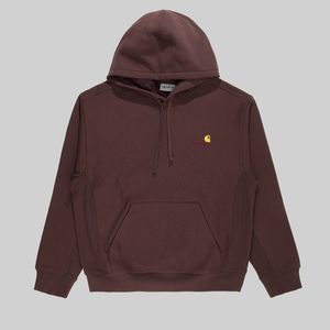 Толстовка Carhartt WIP American Script Hooded выполнена из смеси плотного натурального хлопка и полиэстера с начесом на изнаночной стороне. Силуэт имеет свободный крой с эластичными манжетами на рукавах и подоле. Приятным дополнением является регулируемый капюшон на шнурке и карман-кенгуру. Выполнен в однотонной расцветке и дополнен контрастным вышитым брендингом на груди.